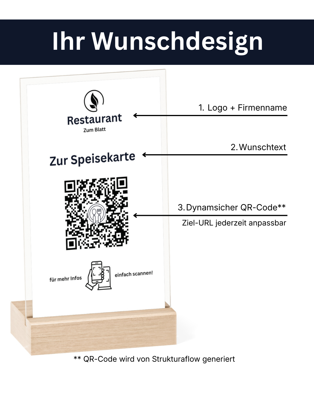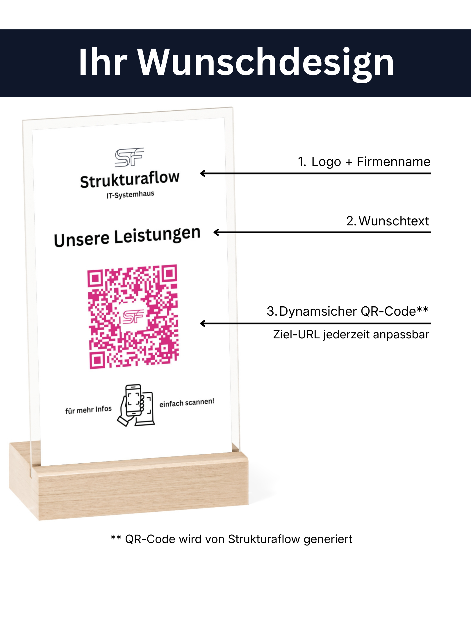 Zum ProduktPremium-Acrylglas mit dynamischem Code direkt ab Werk – Design, Hosting und Druck aus einer Hand. Sofort einsatzbereit bei Lieferung.